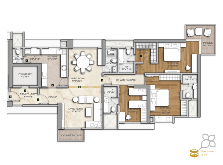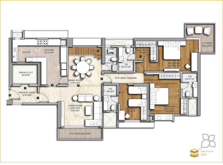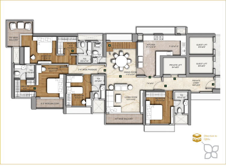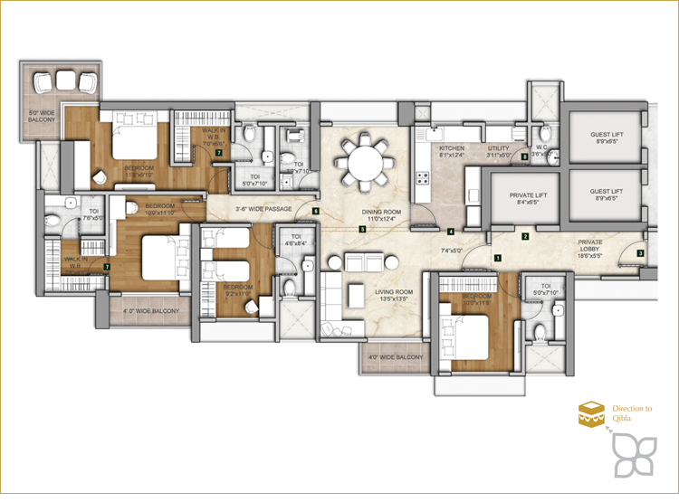 Announce your social status with the biggest sky villa ever. The 8 bedrooms allow you to stay together as a joint family and enjoy the luxury of a villa. 4 master bed rooms with 4 other rooms over two interconnected levels are the perfect fit for your family.